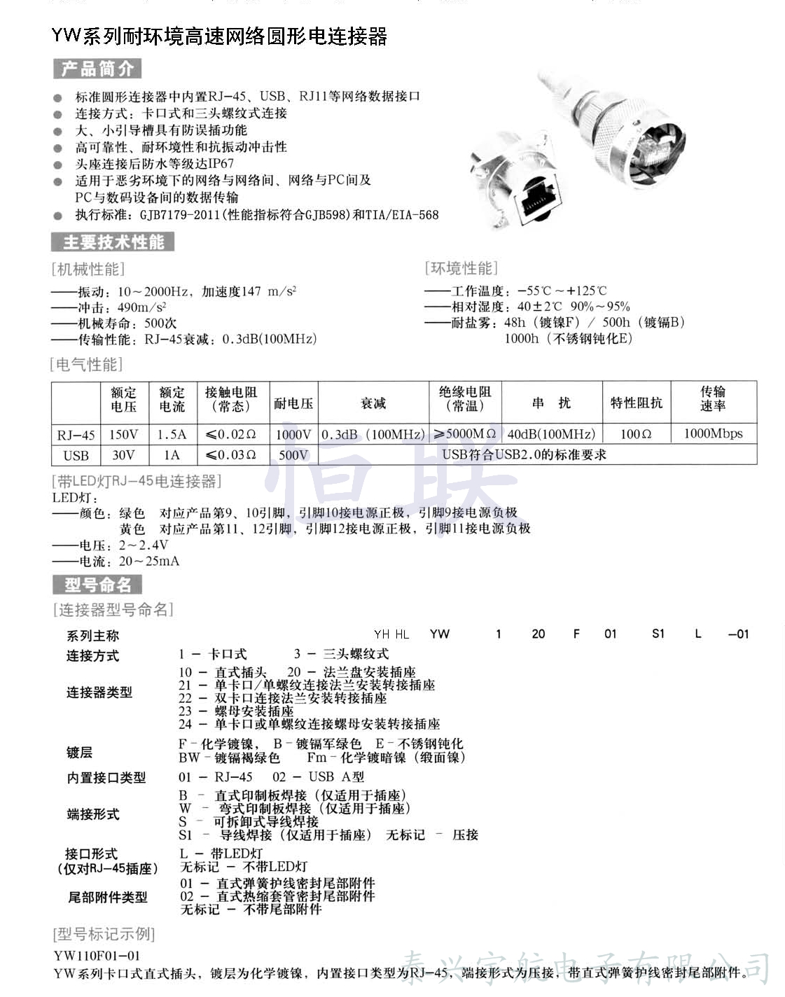 • 耐環(huán)境高速網(wǎng)絡(luò)圓形電連接器 產(chǎn)品型號(hào):YW(CT55)系列