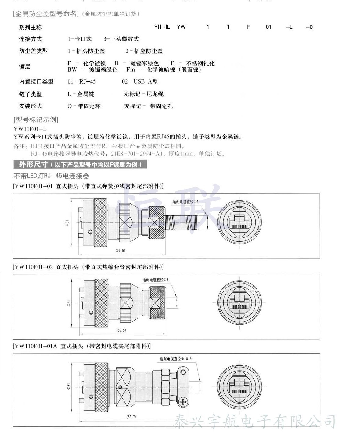 6、尾部附件:可根據(jù)需要配備帶彈簧護(hù)線密封型、帶熱縮套管密封型尾部附件;